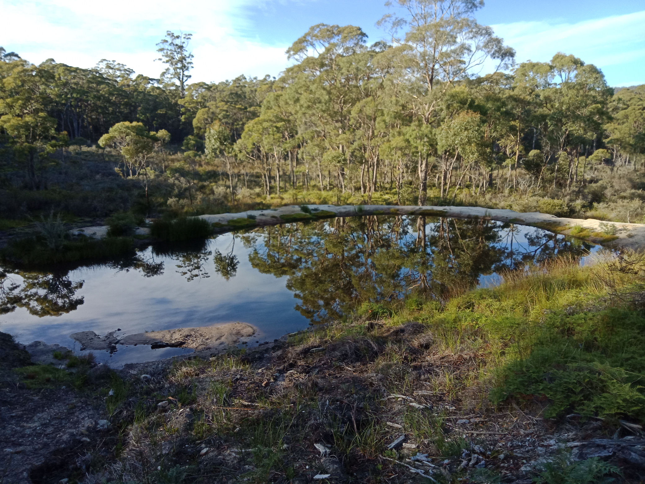Reflections on the small dam.